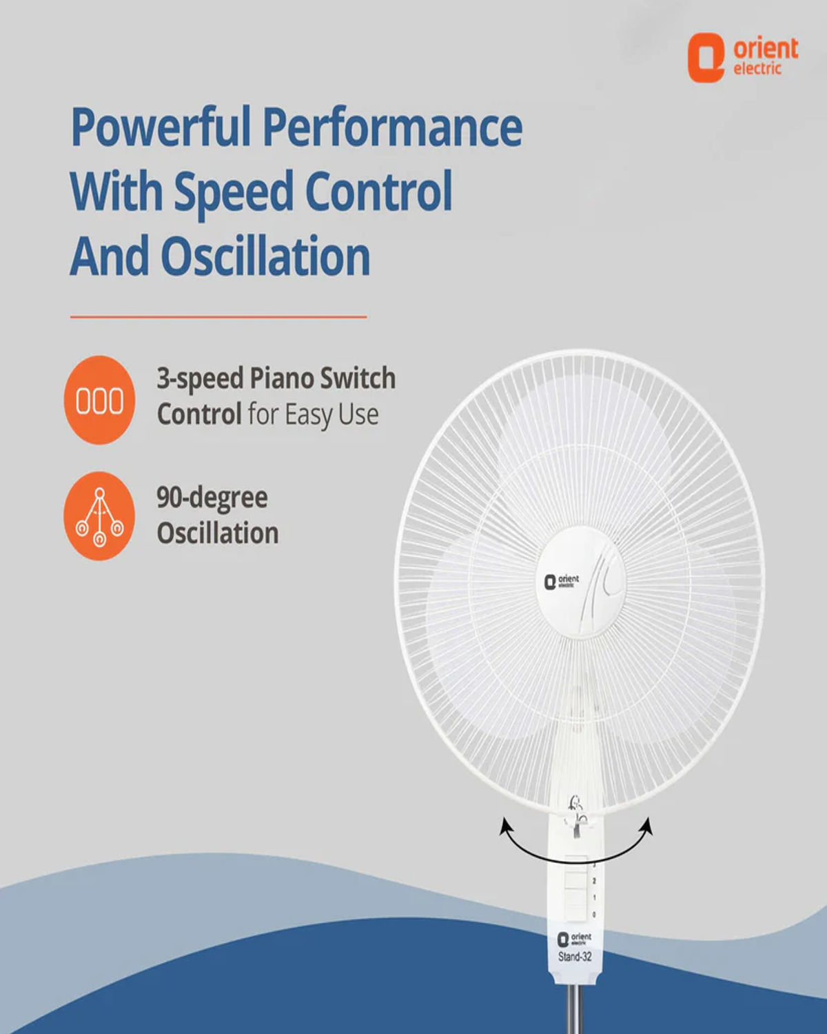 Orient 400MM Stand 32 Pedestal Fan Signal White