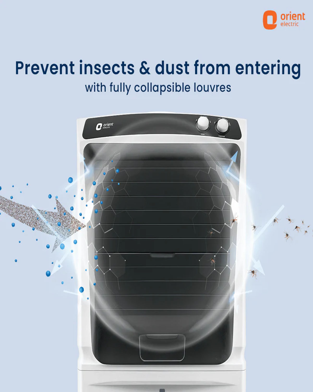 Highlights Smartchill Big Size Desert Cooler for Large Spaces 125L Ultimo Desert Air Cooler 50L elanteXL Semi Automatic 9.0 kg 400MM Stand 32 Pedestal Fan Signal White