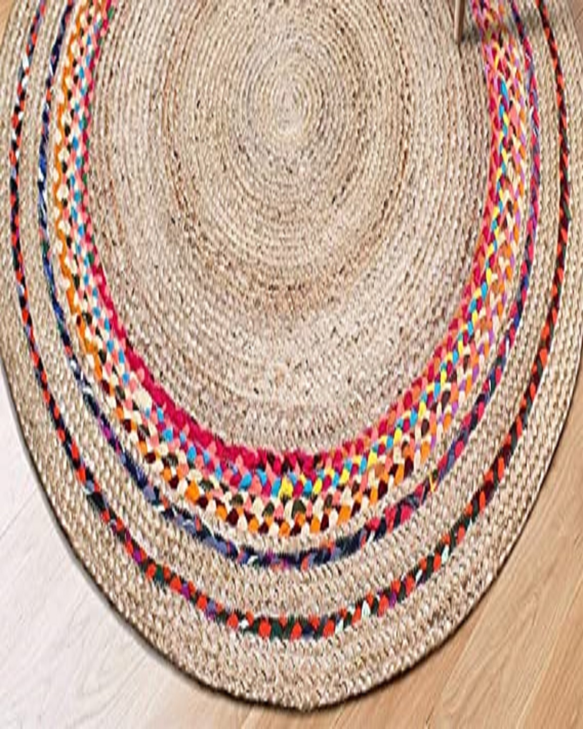 Suryansh Handloom (Size-100cm) Jute & Cotton, Chindi Braid, Hand Woven & Reversible, Vibrant Fabric Rug, Mat for Bedroom Living/Dining Room