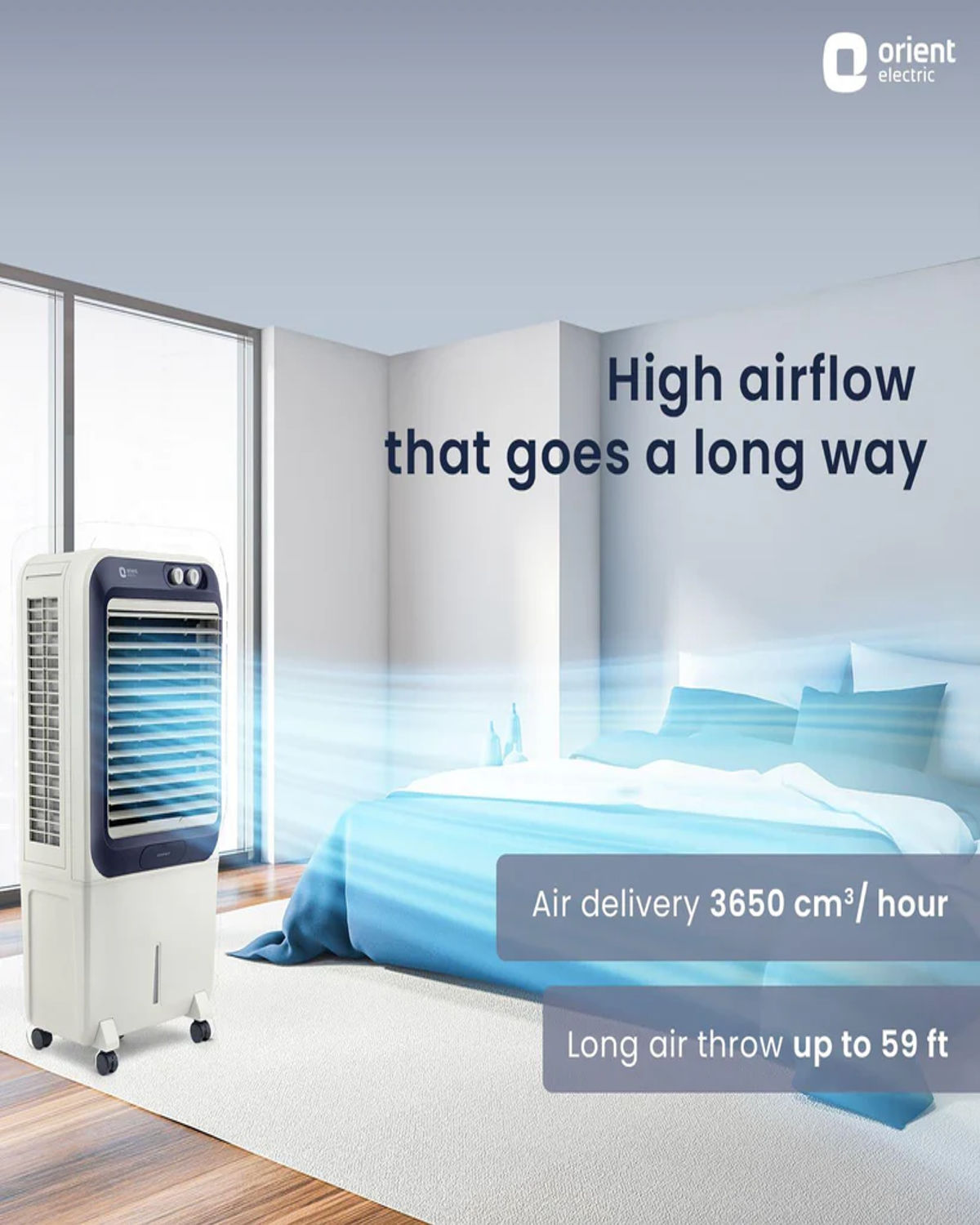 POWERFUL AIR DELIVERY: This desert cooler comes with specially designed fans, which deliver powerful and optimum air throw of 3650 metre cube/hr with a 3-speed motor, guaranteeing cool air reaches every corner of your room. You can change the speed of the fan speed from any of the three levels (high, medium, or low), according to your requirement.